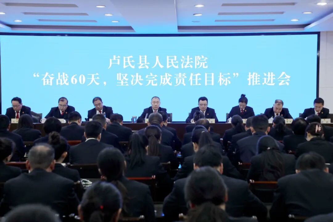 11月4日,卢氏法院召开“奋战60天,坚决完成责任目标”推进会,统一思想、凝聚共识,以决战决胜的姿态坚决打赢年度收官战,党组书记、代院长杨志青出席会议并讲话,全体干警参加会议。