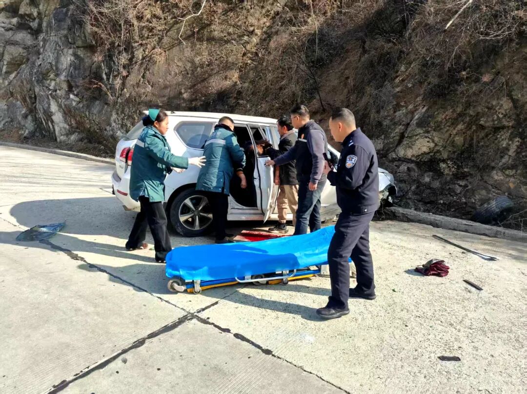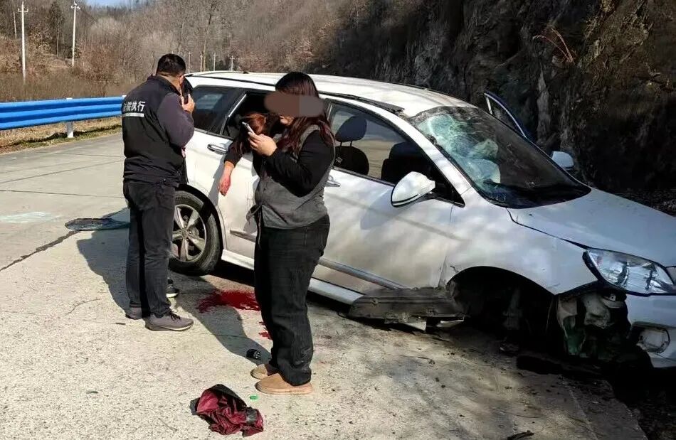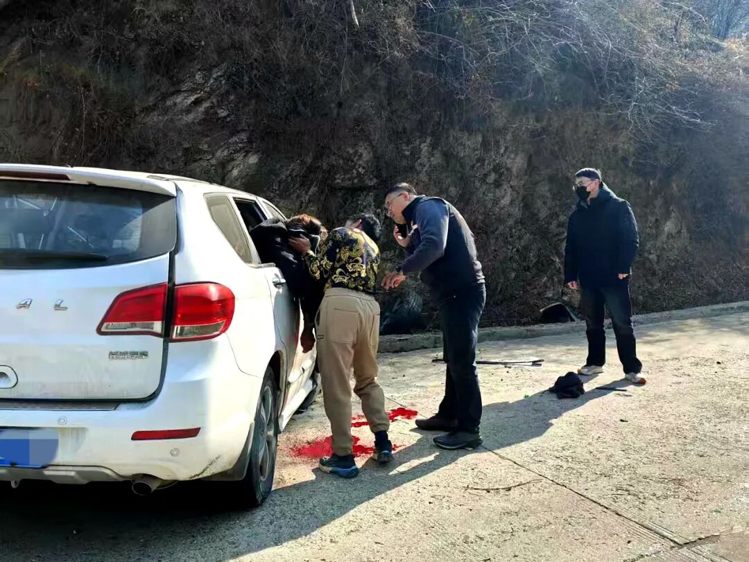 12月10日上午,卢氏法院干警王道奇、杨菲、赵文轩、赵珩一行驾车前往双槐树乡办理公务。途经344国道一处弯道时,突遇一辆白色SUV横在路边,车身严重变形、零件散落一地。