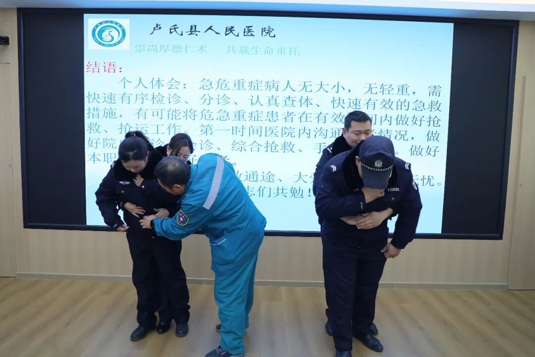 当当事人或同事在法庭内外突发急症,黄金救援时间如何把握?为提升干警应急救护能力,1月7日,卢氏法院特邀县人民医院急诊科医护团队走进法院,为司法警察送上了一份特殊的“健康守护”大礼包。