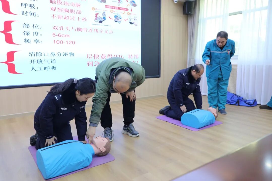 培训中,急诊科医生化身“讲师”,聚焦法院工作场景,用通俗语言和真实案例,详细讲解了心肺复苏(CPR)、AED使用、气道异物梗阻急救等“救命神技”的关键要点。