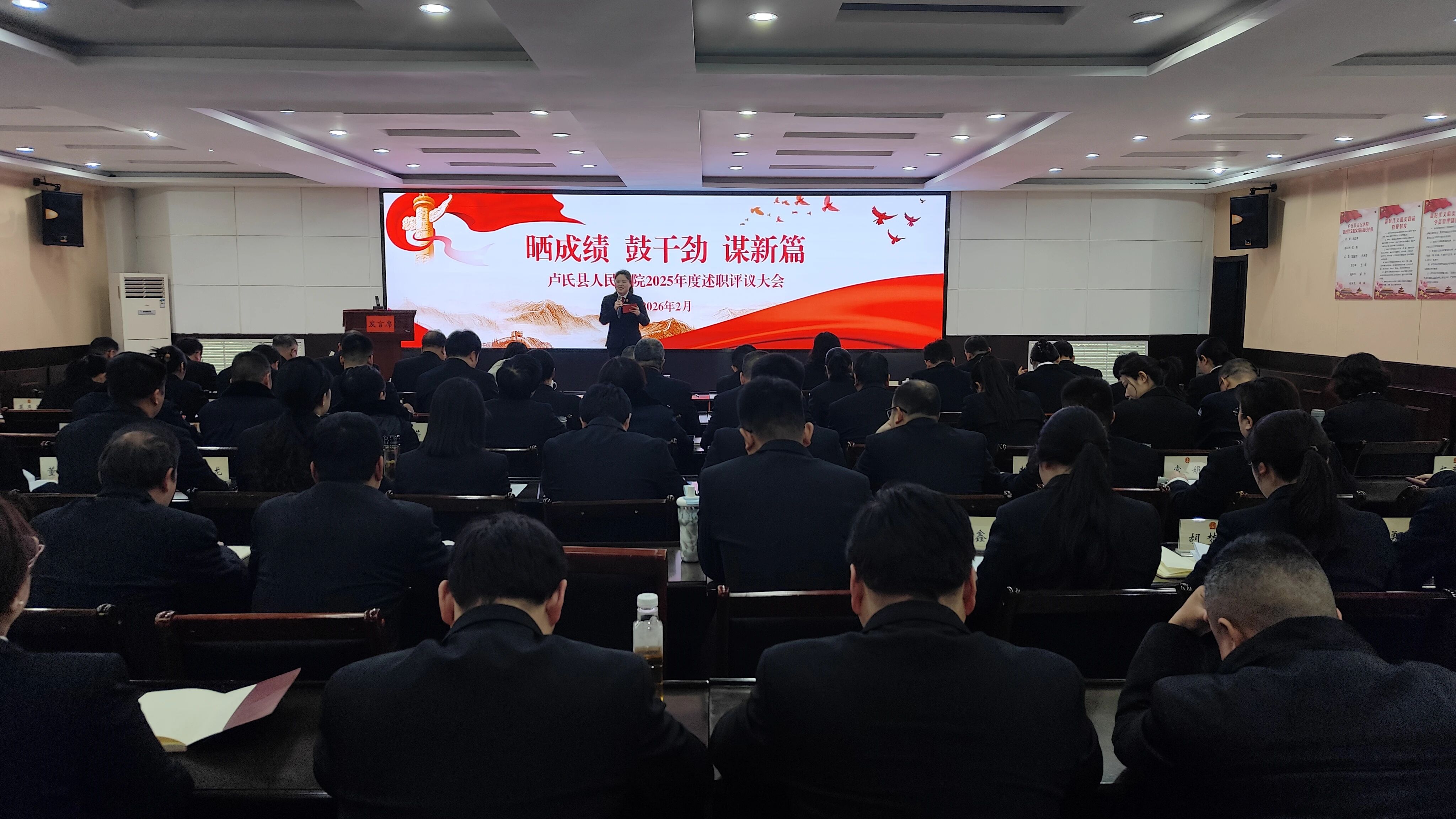 2月3日,卢氏法院召开2025年度述职评议大会,全面梳理总结全年工作,深入分析研判形势任务,精心谋划2026年工作。党组书记、代院长杨志青出席会议并讲话,全体干警参加会议。