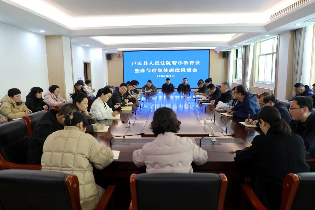 2月13日,卢氏法院召开警示教育暨春节前集体廉政谈话会,为全体干警敲响廉洁警钟、绷紧纪律之弦。院党组书记、代院长杨志青出席会议并讲话。院班子成员、部门中层、员额法官及执行团队长参加会议。