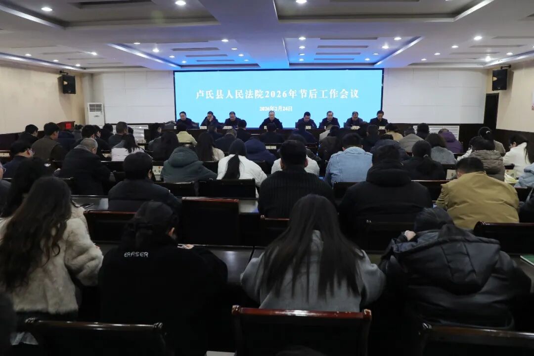 2月24 日下午,卢氏法院召开2026年节后工作会议,动员全体干警迅速收心归位、调整状态、凝心聚力,奋力推动新一年工作实现良好开局。党组书记、代院长杨志青出席会议并讲话,全体干警参加会议。